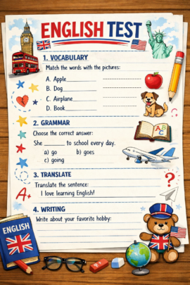 Confecciono material didático e provas/testes de inglês para o público alvo do ensino fundamental e médio. Será feito enviado através de pdf e cada página de do material custará 20 reais. Faço textos, questões discursivas e com alternativas, organização do material. A matéria deverá ser enviada para que eu possa montar as questões com qualidade. Também, deverá ser explicitado o grau de dificuldade das questões.