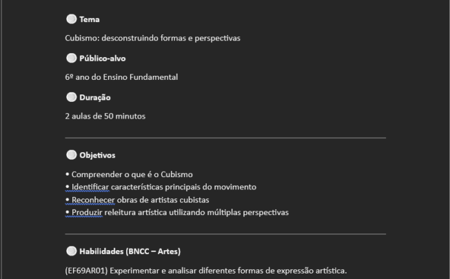 Atividades de Artes (cores, formas, cubismo, releitura artística)
