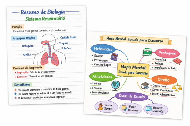 Faço resumos claros, organizados e fáceis de entender, ideais para provas, concursos e faculdade.