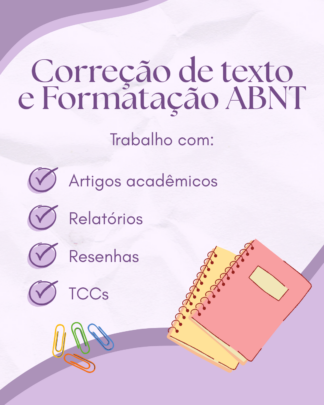 Eu vou corrigir o seu trabalho acadêmico e formatá-lo em abnt