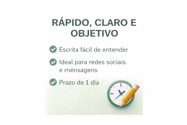 Trabalho com escrita de textos simples, claros e bem organizados, ideais para quem precisa de ajuda com conteúdos básicos.