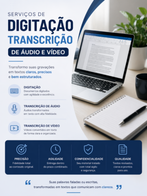 Transcrição de Áudio ou Vídeo: Até 15 minutos de conteúdo transcrevido e revisado.