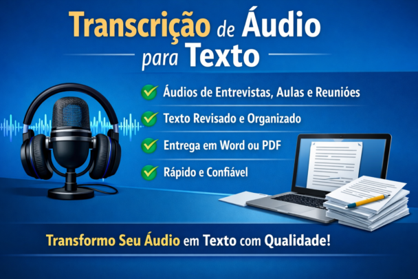 Envie seu áudio e transformo em texto com rapidez e qualidade.
