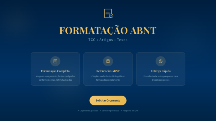 Entrego o arquivo em Word editável e em PDF. Garanta sua nota na formatação sem estresse!
