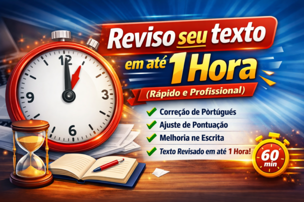 Faço a revisão completa do seu texto em até 1 hora, corrigindo erros de ortografia, pontuação e melhorando a clareza da escrita, deixando tudo mais profissional e fácil de entender.