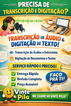 Está sem tempo para transcrever aquela reunião, aula ou transformar um PDF em texto editável? Eu faço isso para você com total atenção aos detalhes e gramática.