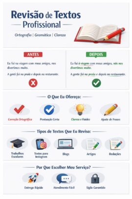 Faço revisão e edição de textos para deixar seu conteúdo mais claro, profissional e sem erros.