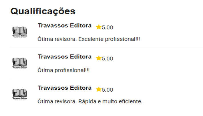 Tenho experiência com revisão de ebooks, textos literários e materiais editoriais, com avaliações positivas de clientes na própria plataforma.