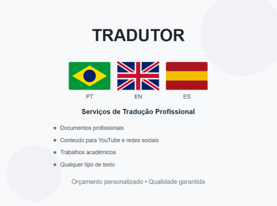 Eu vou traduzir qualquer documento ou vídeo, em até 3 idiomas.