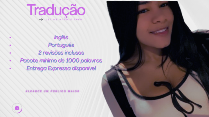 Sou experiente com tradução corporativa e estou transicionando para a tradução literária. Gosto de trabalhar com ficção, mas estou aberta a artigos e documentos também. Entre em contato para cotar o seu projeto.