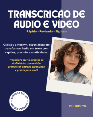Olá! Sou a Hushyn, especialista em transformar áudio em texto com rapidez, precisão e criatividade.