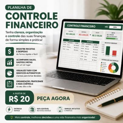 Eu vou fazer sua planilha de controle financeiro