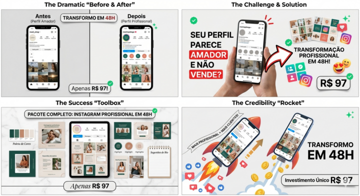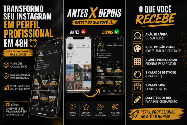 Eu vou transformar o visual do seu perfil em até 48 horas, deixando ele com aparência profissional, estratégica e muito mais atrativa.