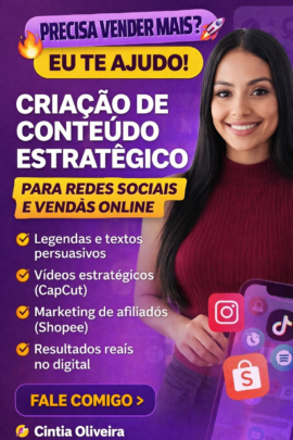 Crio conteúdos estratégicos para redes sociais e vendas online. Atuo com marketing de afiliados, textos persuasivos, vídeos no CapCut e posicionamento digital. Entrego soluções práticas, comunicação clara e foco em resultados.