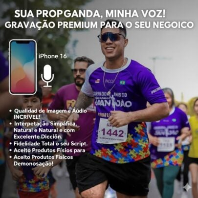 Eu gravo a sua propaganda seguindo fielmente o script enviado, garantindo que sua mensagem seja transmitida exatamente como você imaginou. A gravação é feita com um iPhone 16, entregando alta qualidade de imagem e áudio para destacar ainda mais o seu produto ou serviço.