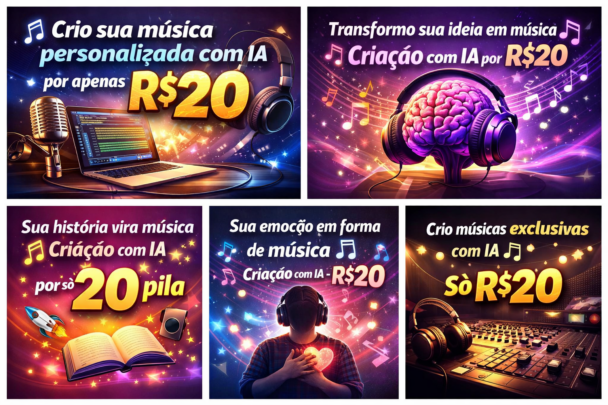 Eu transformo ideias, histórias, sentimentos e experiências em músicas exclusivas, criadas com o apoio de inteligência artificial e curadoria humana. Você me conta o que deseja — pode ser uma história pessoal, um momento marcante, uma mensagem, uma vibe ou até um desabafo — e eu transformo isso em música.