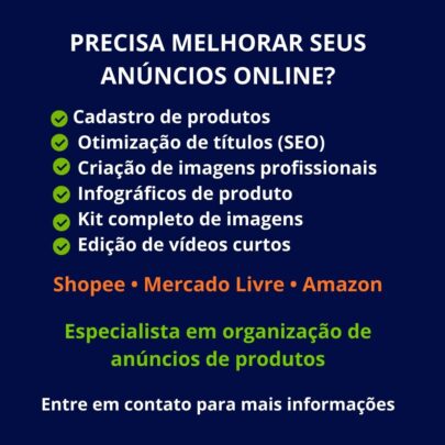 Precisa colocar seus produtos para vender no Mercado Livre ou Shopee, mas não tem tempo ou não sabe como fazer?