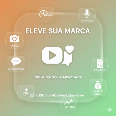 Transformo ideias em propagandas irresistíveis! Crio campanhas publicitárias impactantes, criativas e sob medida para alavancar sua marca, conquistar seu público e turbinar seus resultados. Deixe sua mensagem brilhar e atraia mais clientes com anúncios que realmente conectam!
