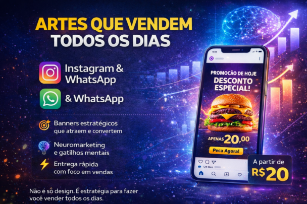 Eu vou criar artes profissionais e estratégicas para Instagram e WhatsApp, focadas em chamar atenção e fazer seu cliente comprar.