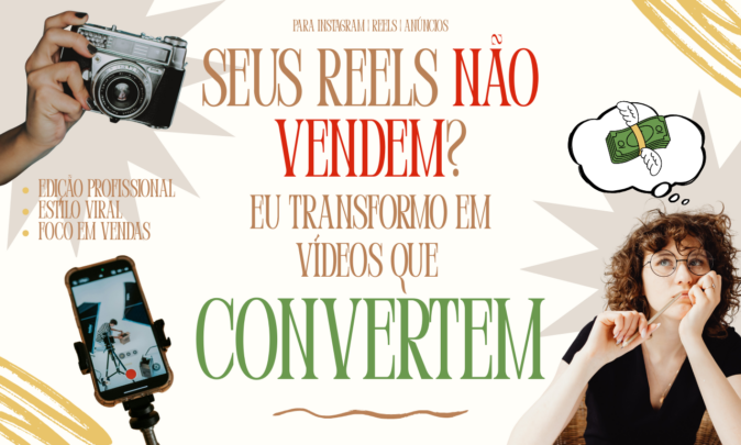 Eu edito seus vídeos no formato ideal para Instagram, Reels e anúncios, focando em retenção e conversão.