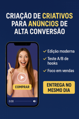 Entrego criativos prontos pra rodar, com copy ajustada e estrutura de alta conversão.