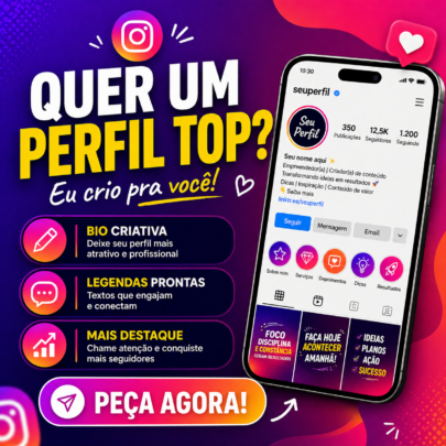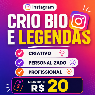 Crio biografias e legendas personalizadas para Instagram, deixando seu perfil mais organizado e atrativo. Produzo textos criativos, com emojis e estilo adequado ao seu perfil, ajudando você a se destacar e chamar mais atenção.