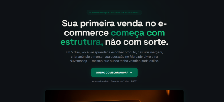 Criação de landing page completa para captação de leads com foco em conversão. Página com proposta de valor clara, estrutura persuasiva e CTA definido — “Sua Primeira Venda em 5 Dias”.