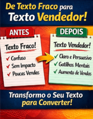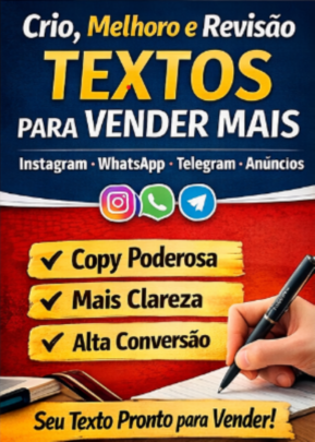 Eu vou criar, melhorar ou revisar seu texto com foco em clareza, organização das ideias e persuasão natural, ajudando seu público a entender o valor da sua oferta e tomar uma decisão com mais segurança.