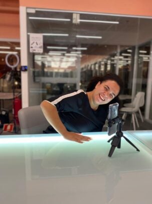 Sou criadora de conteúdo (UGC) e gravo vídeos de alta qualidade com iPhone 12 Pro Max e microfone profissional.
