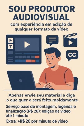 Sou produtor audiovisual com experiência em edição de qualquer formato de vídeo.