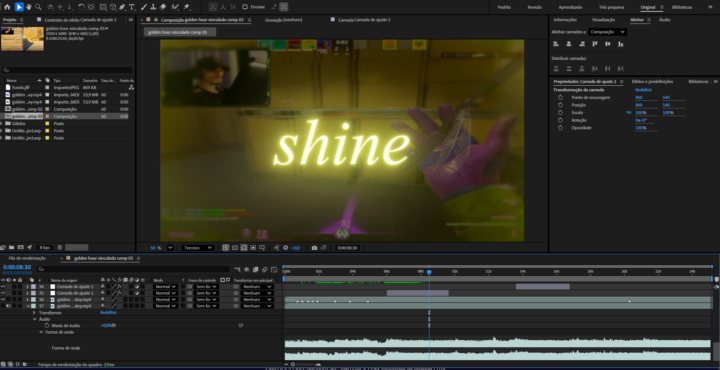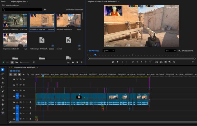 Aplicativos principais usados na edição são Premiere Pro e After Effects.