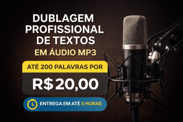 – Envio do áudio em até 5 horas úteis para textos de até 200 caracteres.