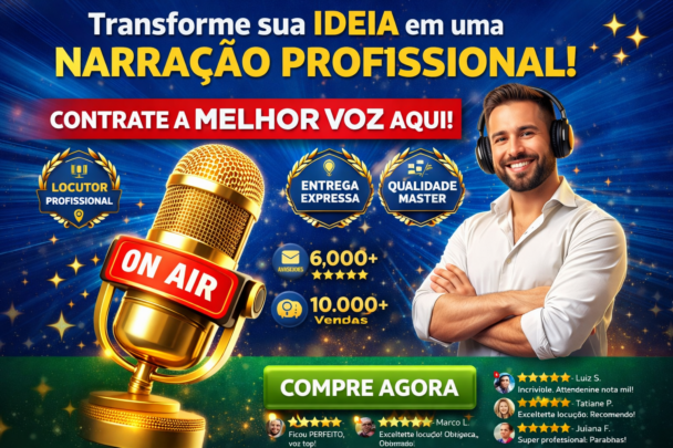 Meu foco é entregar uma locução profissional, envolvente e pronta para uso, com padrão comercial.
