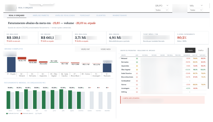 KPIs estratégicos (faturamento, crescimento, performance);