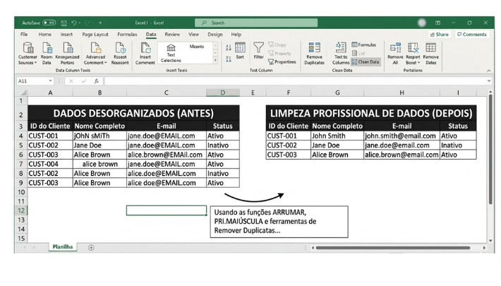 Limpeza e formatação de dados em até 2 abas.