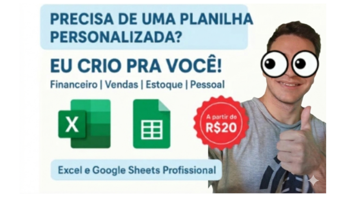 Olá! Sou especialista em Excel e ofereço soluções inteligentes para organizar seus dados, automatizar processos e criar relatórios profissionais.Trabalho com foco em organização e clareza, garantindo que sua planilha seja fácil de usar e visualmente profissional. Confira abaixo as 2 opções de pacotes que preparei para atender sua necessidade: