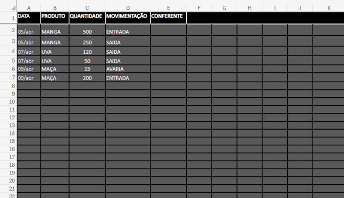 Eu vou entregar uma Planilha de Estoque Automática