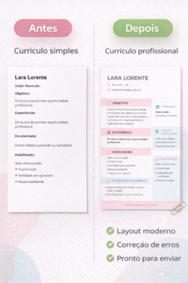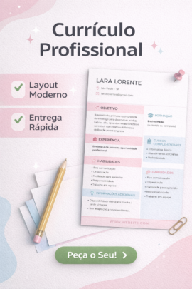 Vou criar um currículo profissional, organizado e pronto para enviar em vagas de emprego.