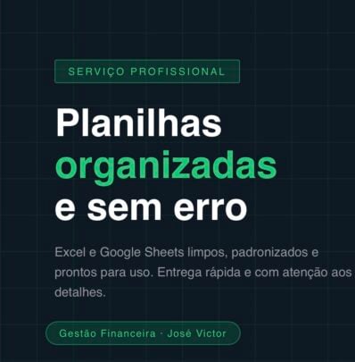 Sou formado em Gestão Financeira e tenho experiência prática na área administrativa e financeira. Trabalhei como Auxiliar Financeiro na Highline do Brasil, onde lidava com cadastro de dados em sistema, controle de informações e organização de documentos. No estágio na Prefeitura de Araçoiaba da Serra, elaborava planilhas, relatórios e organizava documentos do dia a dia.