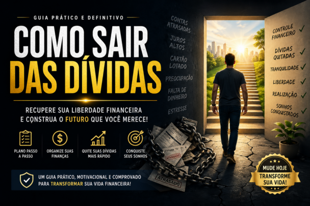 Eu criei esse eBook pensando em quem tá cansado de viver apertado e não sabe por onde começar. Nele, eu explico de forma simples como organizar seu dinheiro, cortar gastos desnecessários e dar os primeiros passos pra sair das dívidas.