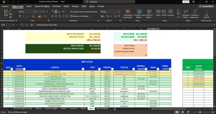 Eu vou organizar sua planilha no excel ou Google Sheets
