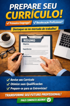 Ideal para quem busca o primeiro emprego, transição de carreira ou recolocação rápida no mercado.Como funciona: Após a compra, envie seu currículo atual e as vagas que deseja almejar.Aumente suas chances agora por apenas R$ 20,00!