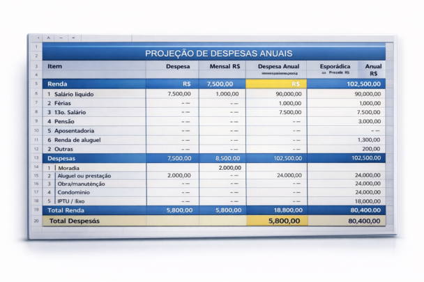 Tenha acesso a layouts de planilhas prontos, organizados e visualmente claros para controlar sua vida financeira sem complicação.