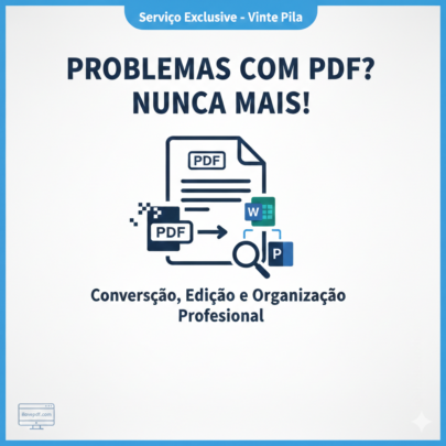 Você tem um documento que não consegue editar? Um arquivo pesado demais para enviar por e-mail? Ou precisa transformar um PDF em uma planilha de Excel sem bagunçar os dados? Eu faço isso para você com acabamento profissional.