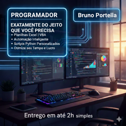 ​Olá! Sou o Bruno Portella, programador especialista em automação e Excel. Meu objetivo é transformar sua dor de cabeça em uma ferramenta eficiente, exatamente do jeito que você precisa.