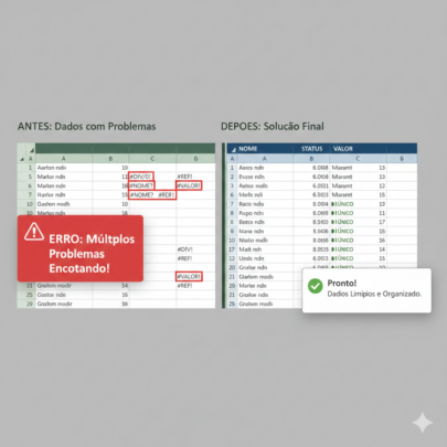 ​Conserto de Erros: Sabe aquela fórmula #VALOR! ou #N/D que você não sabe de onde vem? Eu encontro e corrijo.