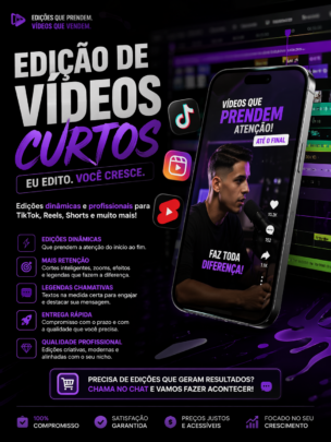 Eu vou Editar Profissional de Vídeos Curtos para TikTok ETC