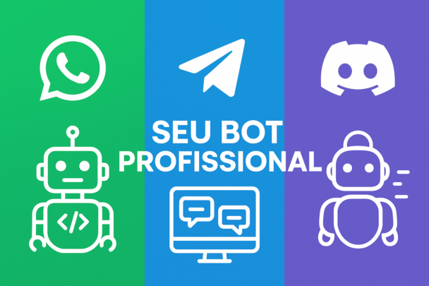 Desenvolvimento de bots personalizados e profissionais para WhatsApp, Discord e Telegram, adaptados às necessidades do seu negócio ou comunidade.