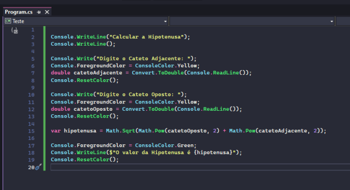 Eu vou fazer um script/código simples em C Sharp