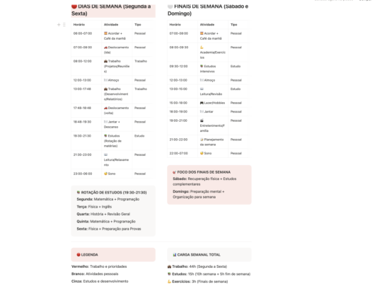 • Opção de incluir metas, calendário, to-do list, hábitos, rotina semanal, finanças, estudos, treinos e mais